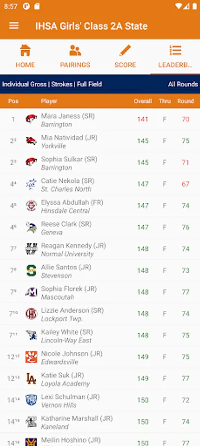 The IHSA Golf App combines mobile and desktop application technology to allow golfers to view live leaderboards during events and tournaments. On game day, just enter your scores into our easy-to-use scoring interface to let spectators and competitors keep track of your round in real time.