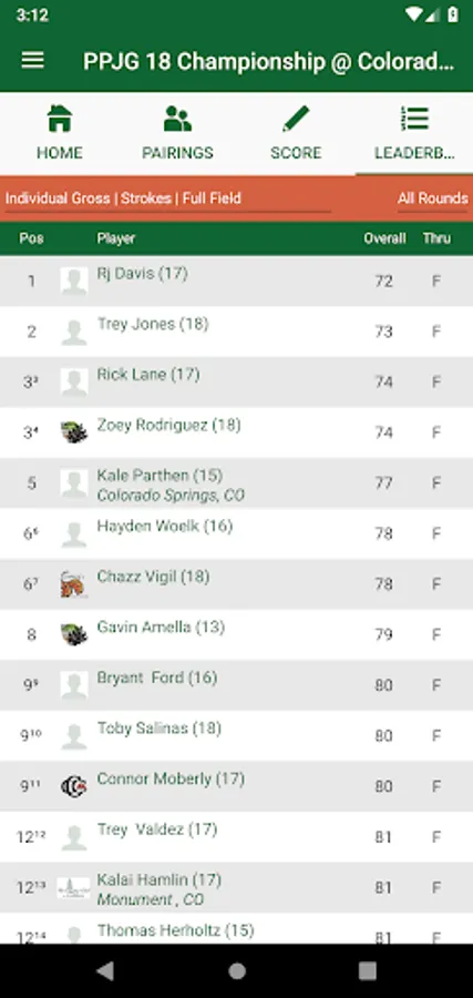 Players, league administrators and the Pikes Peak Junior Golf maintain a profile of all the tournaments, statistics and rankings throughout the season as well as their junior golf career.