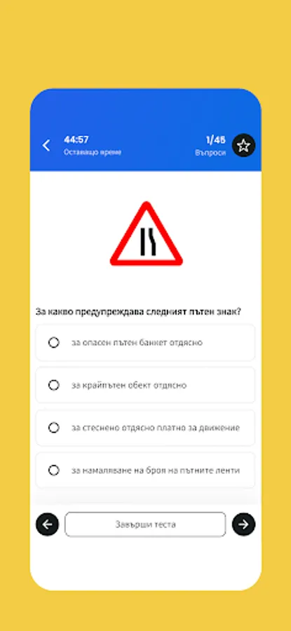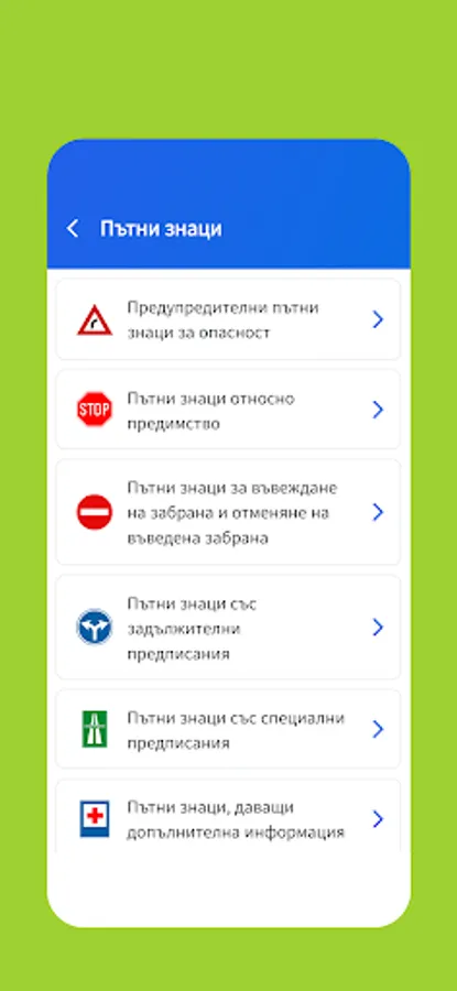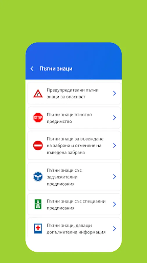 ● Numerous and different exam leaflets, including all the topics set in the actual driving test, namely - the meaning of road signs, who has the advantage, what you would do in a given situation, etc. All of them could suit you and are a great way to prepare. You can decide anytime, anywhere, with just a few clicks on your smartphone!