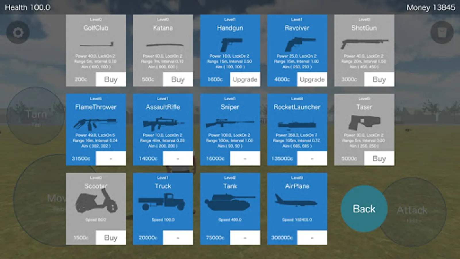 Tanks and planes can also be purchased.