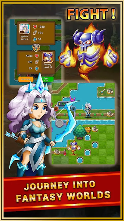 The rise of dark forces brings a potential threat to the entire fantasy continent in Epic world. As a conqueror, your duty are recruit and Collect legend heroes and Upgrade their skill to repel darkness of evil.