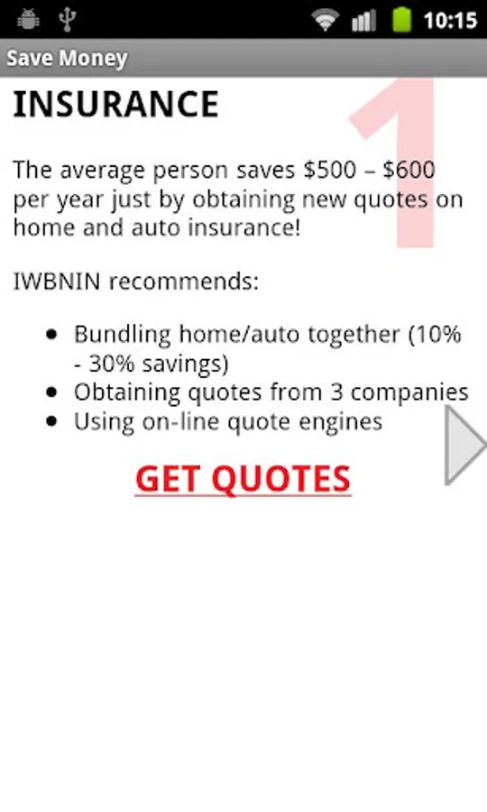 This App was created to help people accomplish far more than they ever thought possible with their personal finances. It allows the user to carry all of IWBNIN's free tools with them - budgets, debt freedom date, financial calculators, and savings tips. It includes additional features such as: Top 5 Lists and 18 Ways To Save $1,000 Right Now! When a financial question arises, this App can be used to send the question directly to the IWBNIN team using the "contact" feature.