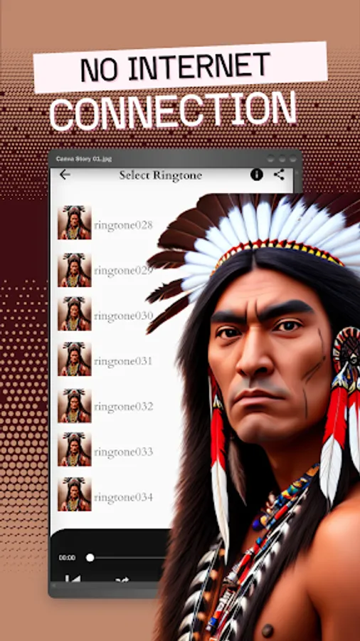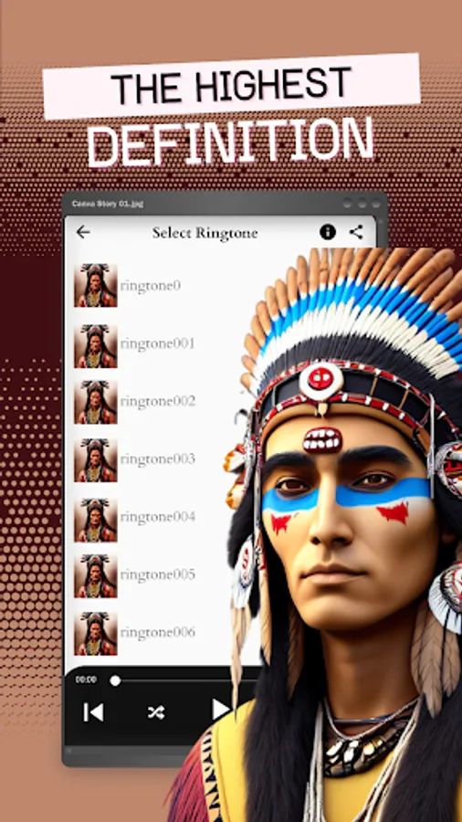 Among the international recognition originating in the country, hundreds of songs and dances of praise stand out that you can listen to and live the story with our Native American Music Ringtone application.