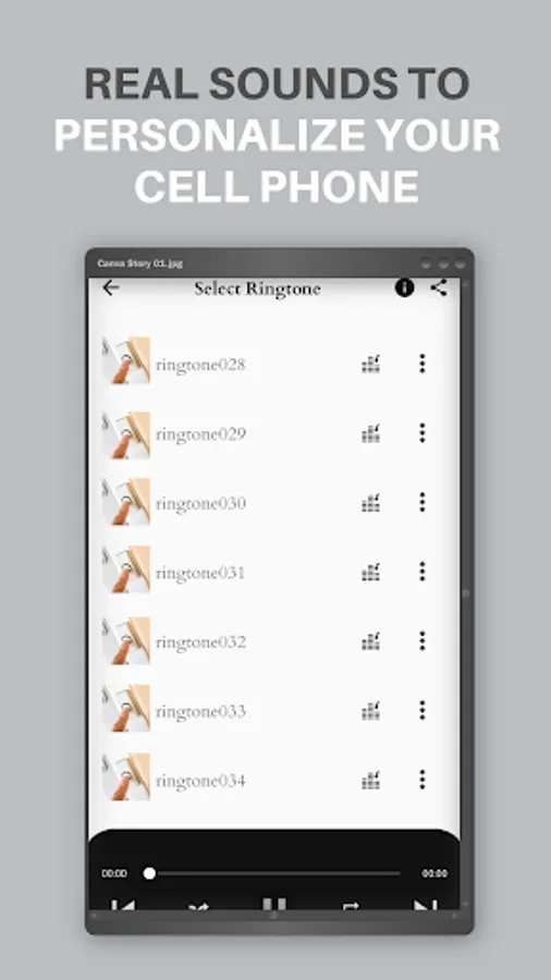 You can set real Ringtone sounds as your phone ringtone, alarm, SMS and contact.