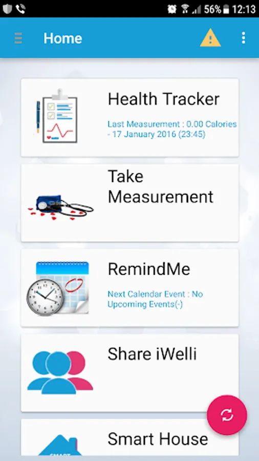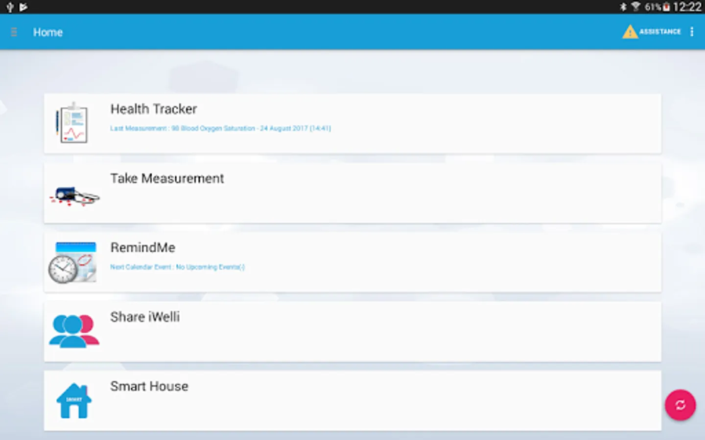 • Home screen: Quick view of your last health measurements and next event reminders. Easily navigate to all screens and synchronize your account with the iwelli.com Web Platform