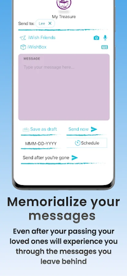 This is an app that allows you to leave behind thoughts and words that you want to convey to your loved ones in case something happens to you.