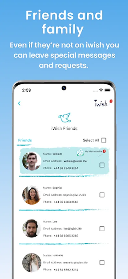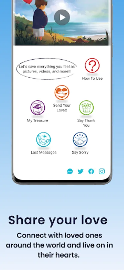This is an app that allows you to leave words and thoughts you want to convey to people you love when it’s really needed. It allows you to send words and thoughts from where you are right now, so you can leave your love and care, and leave your last words in your voice and in video, as precious memories for your loved ones.