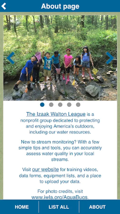 The Aqua Bugs app helps solve bug ID mysteries with a few simple questions. Start with a bug’s legs, tail, or body shape. Clear directions paired with simple line drawings walk you through each choice. Like magic, the name of your bug will appear along with a gallery of photographs and brief description of its key features.