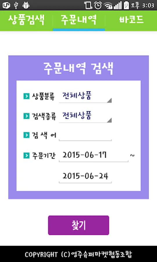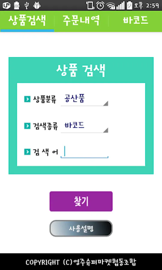 로그인을 하여 상품 정보를 열람하거나 본사로 주문을 넣을 수 있는 앱입니다.
