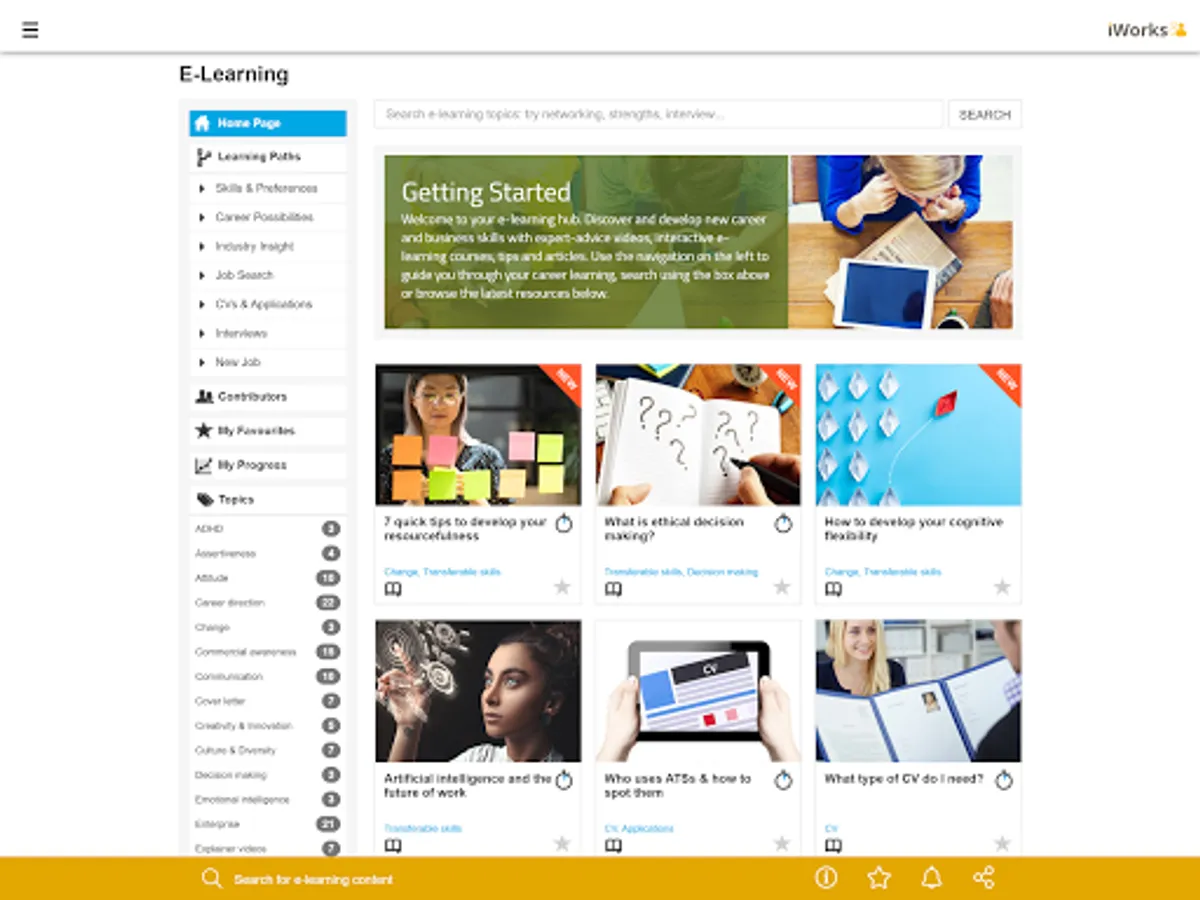 - CAREER E-LEARNING: Short courses tackling everything career-related from self-awareness to succeeding at work