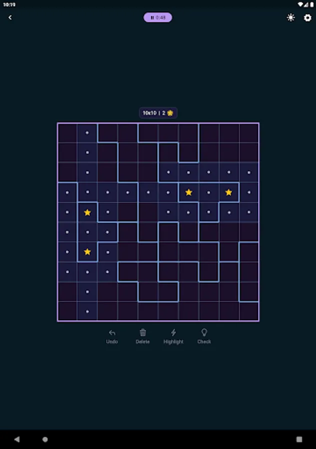 Hoshi (星, Japanese for star) is a free and competitive Star Battle game with daily challenges. Star Battle, also known as "Two Not Touch", is regularly published in the New York Times logic puzzle section. If you enjoy playing tricky puzzles and brain-teasing games and seek a new challenge, then you should give Hoshi a try.