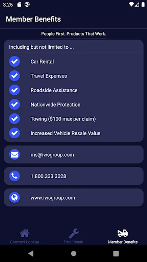 IWS VSA is a way for our members to stay connected and up-to-date on their Vehicle Service Agreements. Check contract information for accuracy, get claim status with push notifications, find nearby repair facilities, and have questions answered by our professional Member Services department.