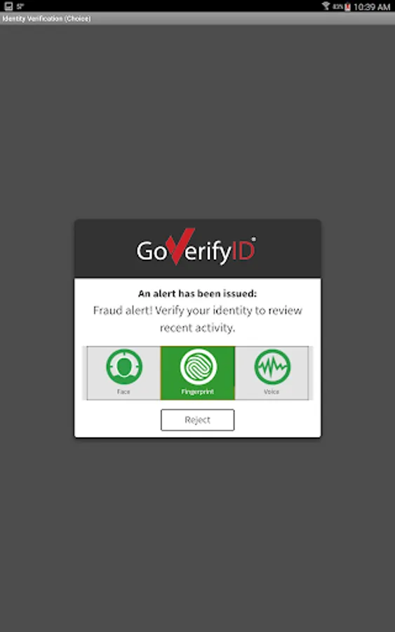GoVerifyID is a biometric authentication application used by businesses—such as banks, secure websites, and the healthcare industry—to protect customer assets and personal information. Using a customer's unique attributes such as their voice print or facial contours, GoVerifyID provides businesses and their customers an unprecedented level of security and asset protection.