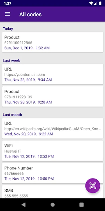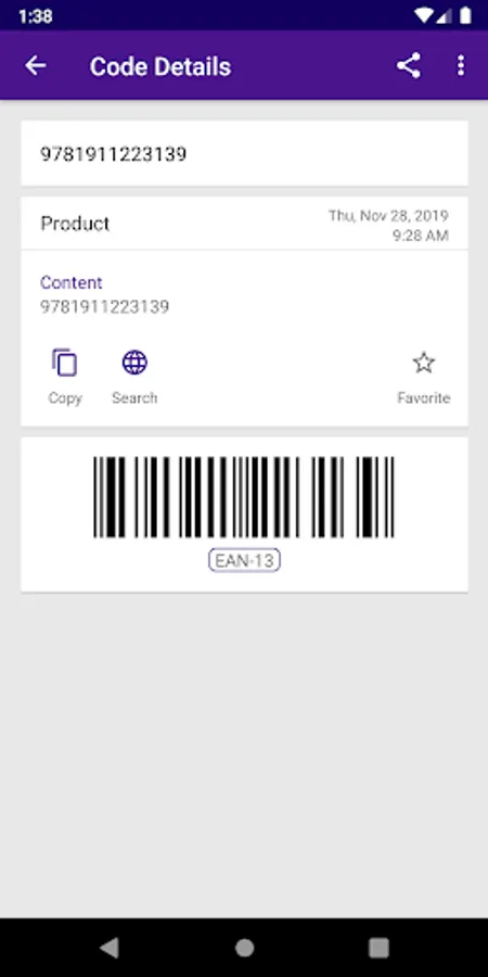 CodeScanner is a very fast and easy-to-use barcode reader. Focus the viewfinder on what you want to scan using the camera or you can scan by choosing a photo from your gallery.