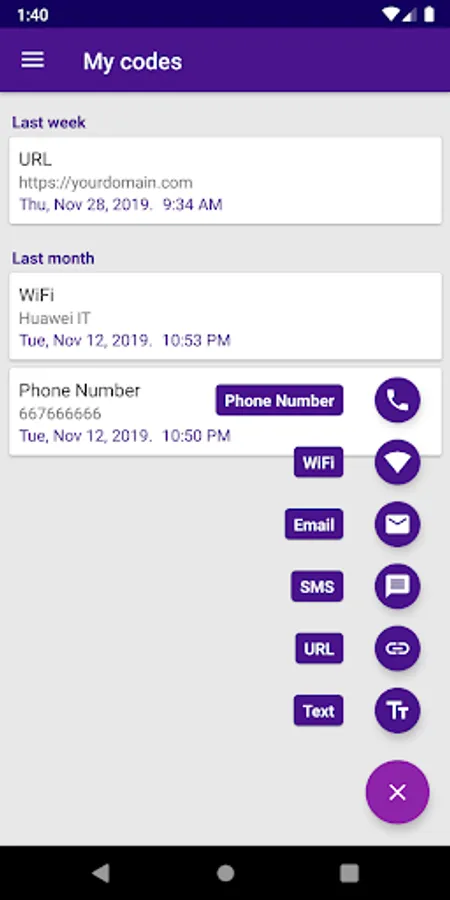 - To create a QR code, go to the My Codes list and click on the create button and fill in the fields