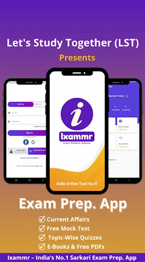 Who we are? Ixammr is a part of Let’s Study Together (LST). LST is India's leading exam preparation destination, loved by millions of aspirants across the country. Through our portal, we help students to prepare actively for various exams like Banking & Insurance, SSC, Railways, UPSC, and State Level Exams to prepare better.