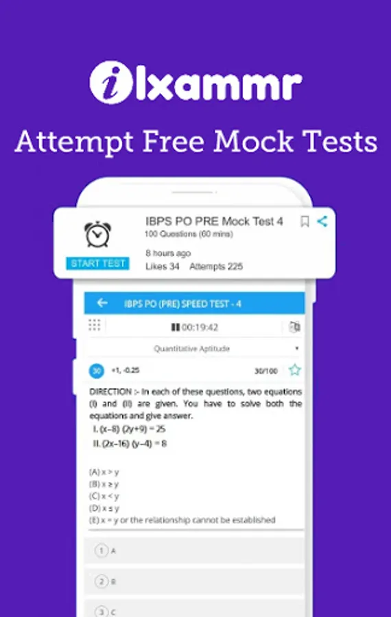 Welcome to Ixammr - The most trusted exam preparation app for competitive exams. Ixammr App is a FREE online Sarkari Exams preparation App, which assists you to prepare for Government Jobs Examination and Entrance Exam like IBPS PO, SBI PO, SBI Clerk, RBI Grade B, NABARD Grade A/B, SEBI Grade A, SSC CGL, SSC CHSL, CPO, MTS, Steno, RRB NTPC, RRB GROUP D, RRB JE, UPSC, Defence Exams, State PCS, and other state level exams.