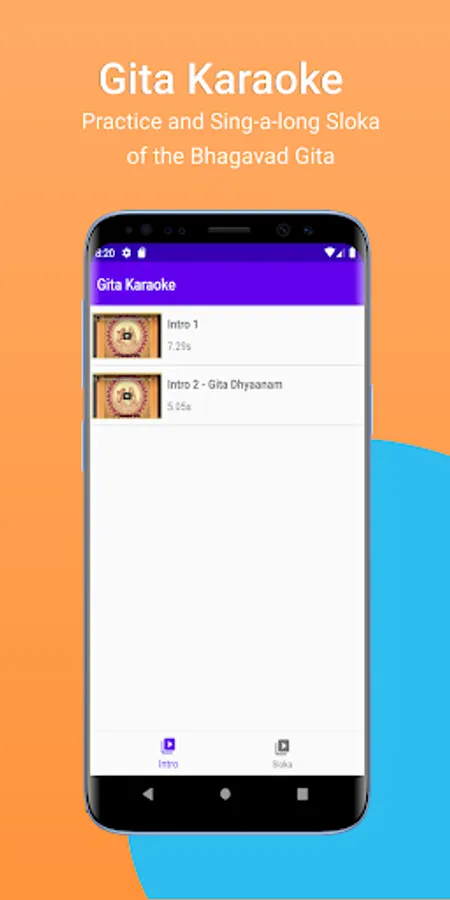 Gita Karaoke is a sing-a-long karaoke slokas for you to learn the Bhagavad Gita.
