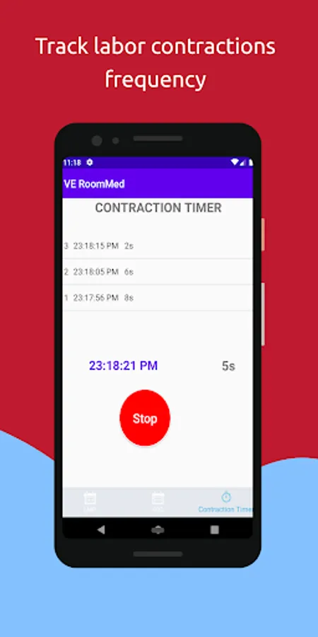 - Track the labor contractions frequency and length with the contraction timer.