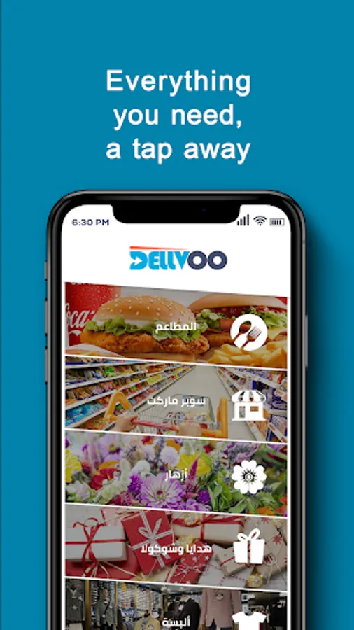 Browse and get your food or things to your door from many distinguished restaurants and stores with complete ease using the (Delvo) application, and you can also track your order through the application.