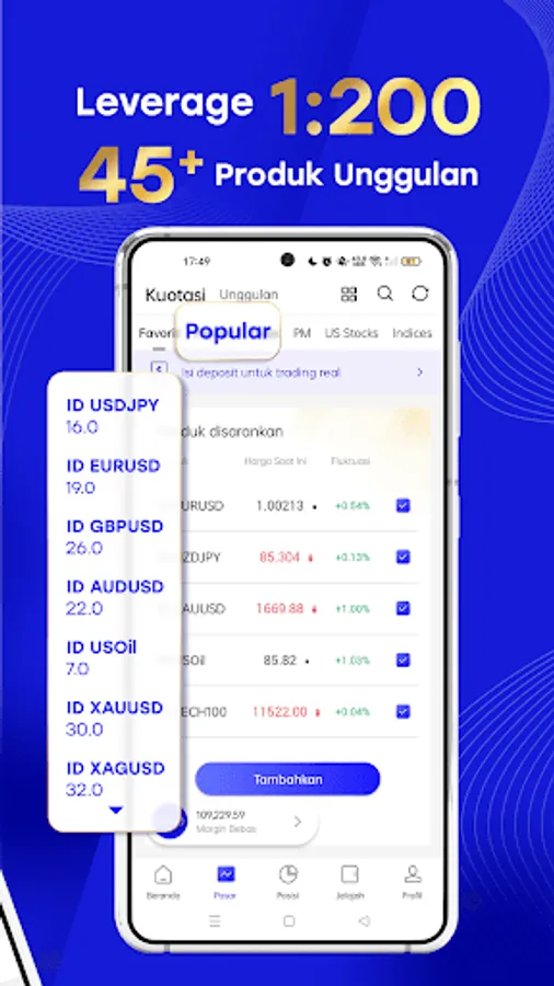 is a trading program based on a smart mobile application developed independently by PT. Reliable Universe Futures. HSB FOREX INVESTMENT has the advantage of flexible transactions anytime and anywhere, also providing information and education about indicators. The products in it include forex, precious metals, stock indices, and other products. Providing Customers with the best and safest trading experience!