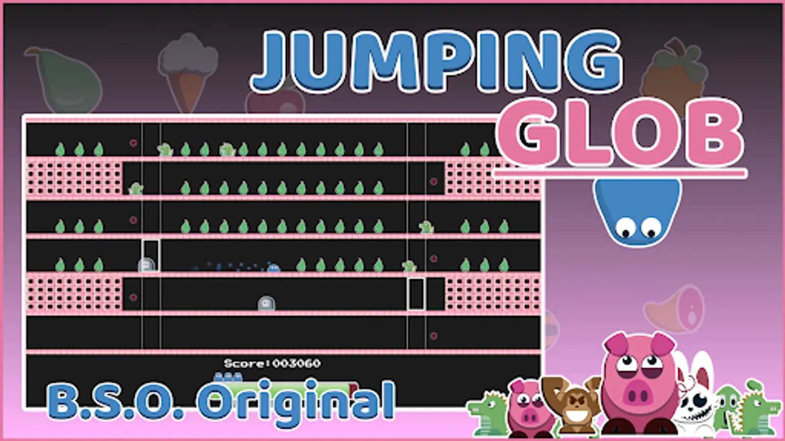 B.S.O. Original by Guillermo Cañete, relaxing and tense music at the same time to set the mood and get you fully into the game, together with clean and friendly sound effects, it will immerse you in the world of Jumping Glob, in the world of a game of Classic arcade platformer from the 80s.