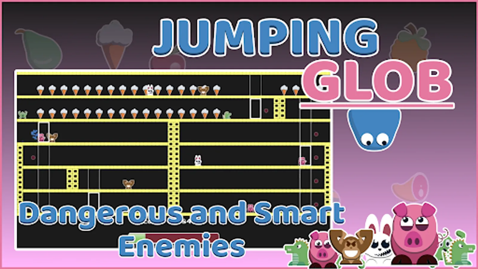 Jumping Glob, is a classic arcade platform game, has 24 original levels, adapted to the new times. When we complete all the levels they are repeated from the first one, increasing the difficulty and intelligence of the enemies, will you be able to give two or more laps to the best classic platform game on the market?