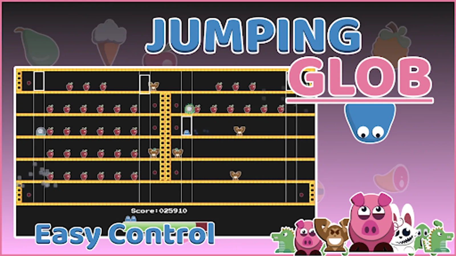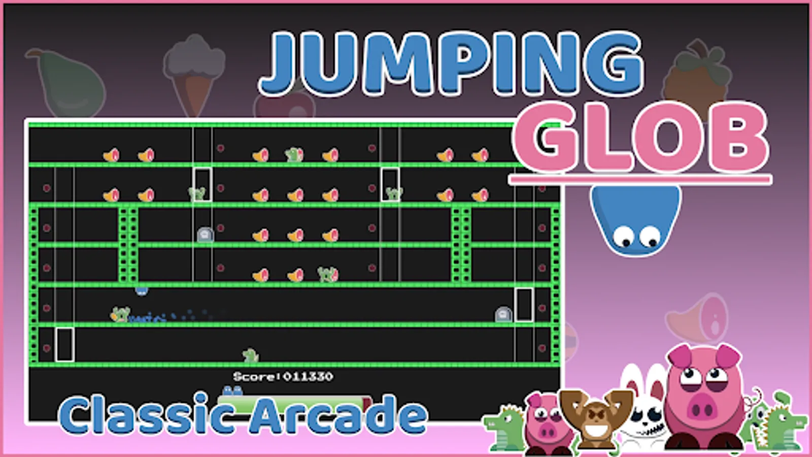 Jumping Glob is an easy-to-control arcade platform game, where you will enter the world of this friendly character, dodging the enemies, using the elevators to move through their platforms and trying to get all the fruits to go to the next level in this arcade platform .