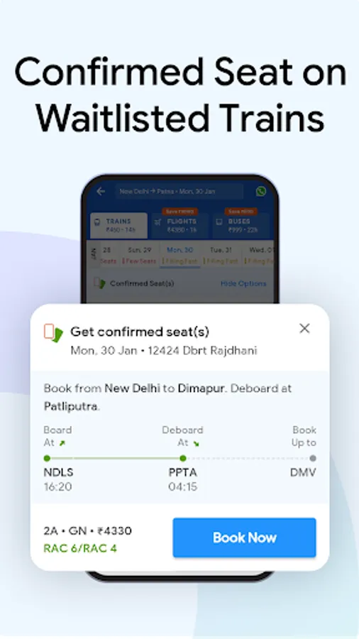 โ Get confirmed seats even when tickets are waitlisted.โ Enjoy hassle-free journey even with last-minute bookings