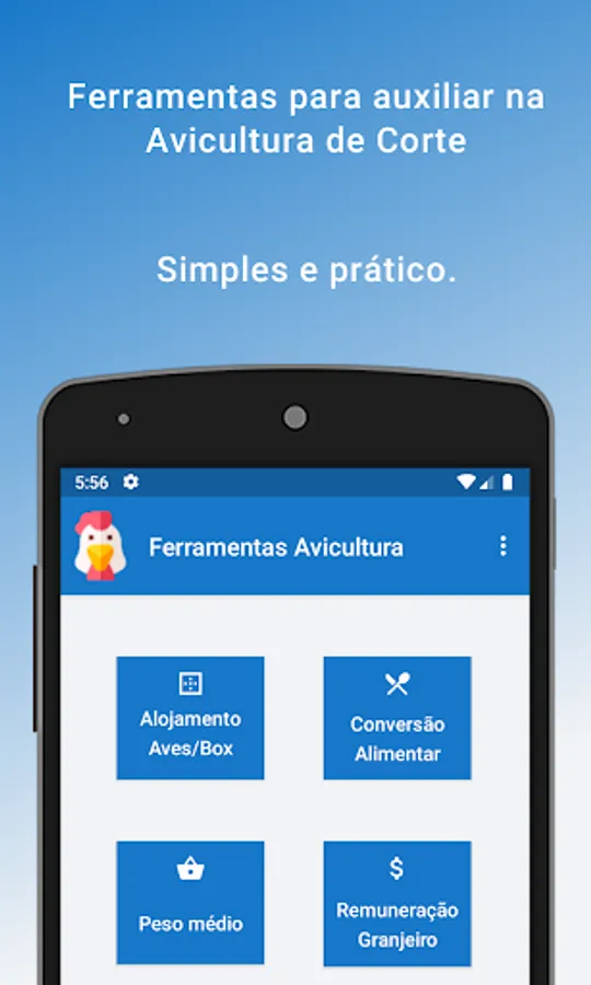 This application presents a set of tools / calculators that help the day to day in Poultry - Broiler.