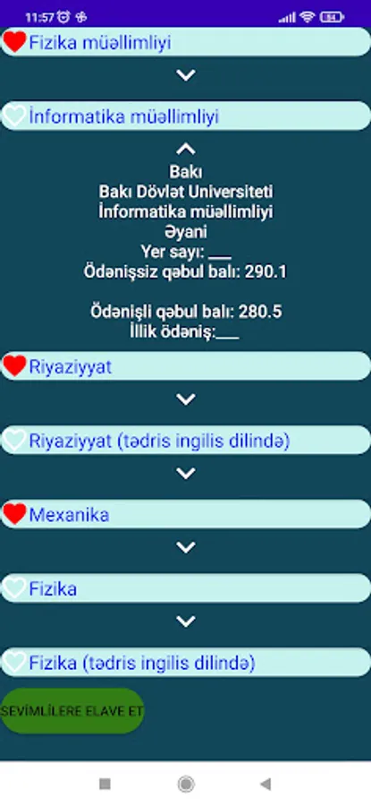 Support in choosing a specialty for those preparing for higher education. Through this application, you can find out in which city and which university the majors corresponding to your score are taught, the number of vacancies and the annual fee, and you can choose the major corresponding to your score.
