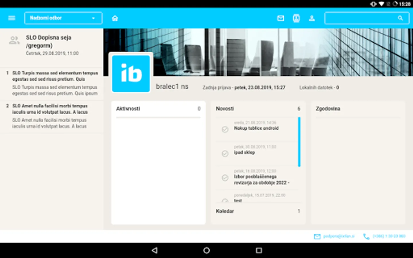 Mobilni klient rešitve eSeje. S tem klientom lahko uporabniki, ki so kupili ali najeli rešitev eSeje, dostopajo do vseh informacij sej organov na varen način. Uporabniki lahko na dokumente dodajajo svoje zapiske in lahko varno komunicirajo med seboj / Mobile client for the solution eBoard. Wtih this client users from organizations which purchased or leased the solution eBoard, can securely access all informations regarding board meetings. Users can make anotations on documents and securely communicate with each other.