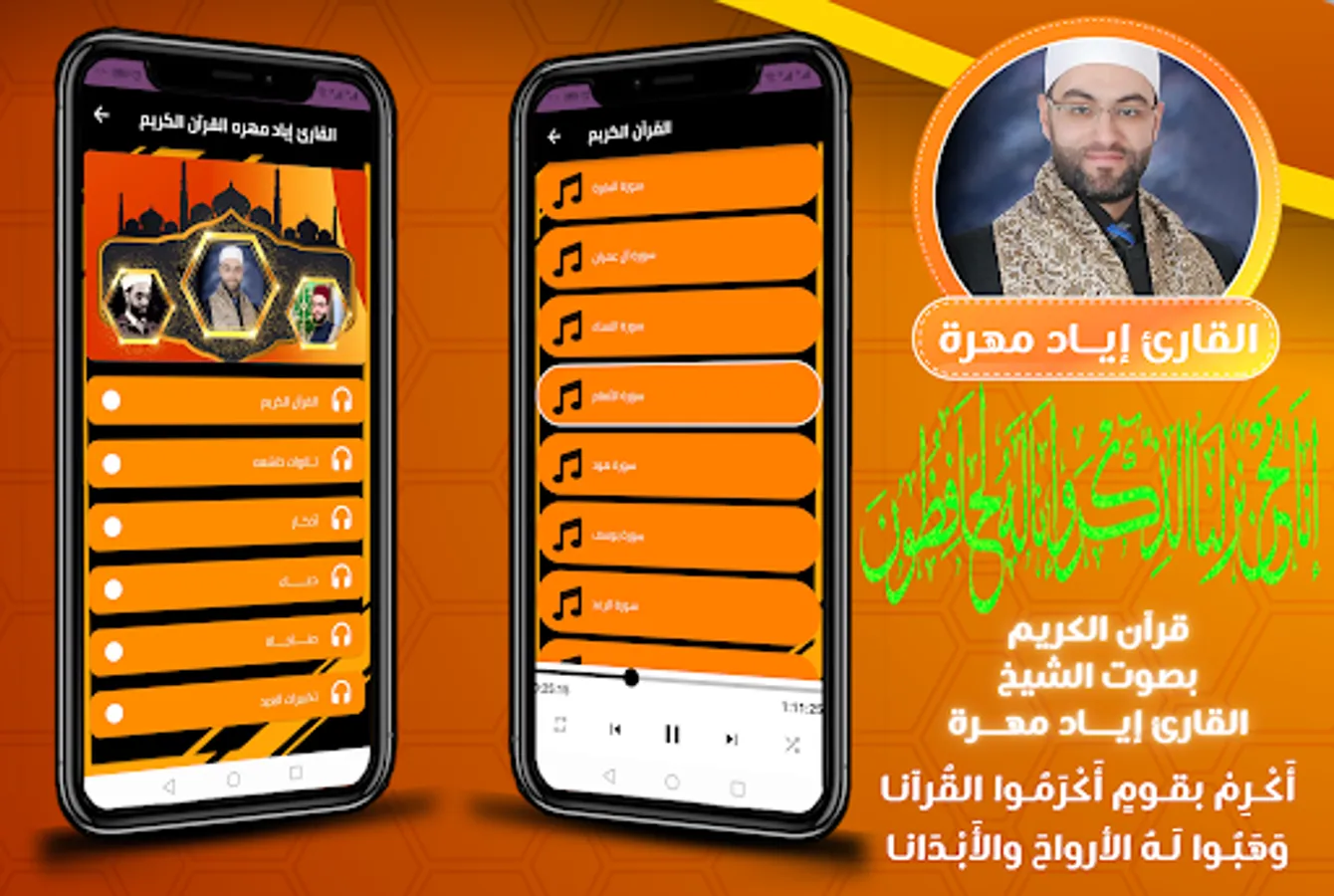 The application of Iyad Mahra, downloading the Noble Qur’an will help you with that, just as the application will help you download the Noble Qur’an, Sheikh Iyad Mahra, to your phone easily.