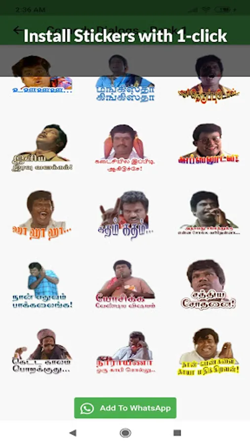 When it comes to WhatsApp Stickers (WAStickerApps) , no one can be more funny than Senthil and Gowndamani combination. Now you can enjoy and share more than 330+ funny Stickers of these 2 comedy experts. You can share this WAStickerApps to your friends.