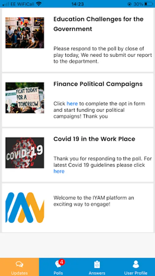 IYAM is an ingeniously simple new platform that helps organisations get their message across, every single time. Because it’s been built especially for mobile, it works seamlessly on remote devices to connect organisations to their members in real time.