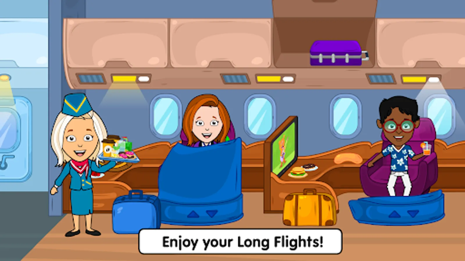 You can check-in your baggage at Tizi Airport, grab some delicious snacks, chill at the lounge and watch little airplanes take off. You can choose to roleplay as your favorite character and explore the Tizi Airport in my town. Play as the airport travel staff and help passengers check-in and load their baggage on the conveyor belt. Scan them and help them board the flight. Or play as the pilot and help your travelers reach their destination on time. Our airplane games for kids offer you a realistic experience and make it a lot of fun to play.