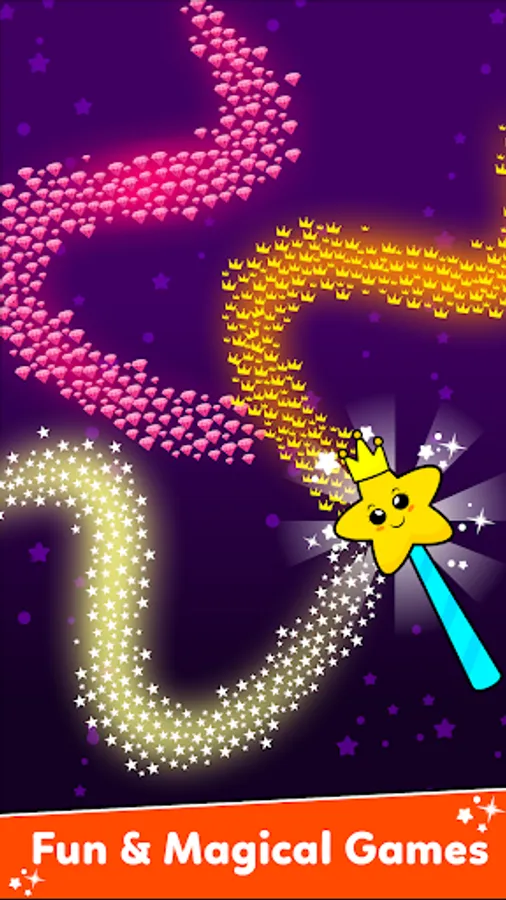 Do you enjoy magic? What about a magic wand that creates glitters instead? Participate in the glitter game in our kids phone games and produce a lot of gorgeous glitter work. In this princess game, you may also produce glitters of many kinds and forms. For example, you can create glitters in the shape of stars, crowns, and diamonds!