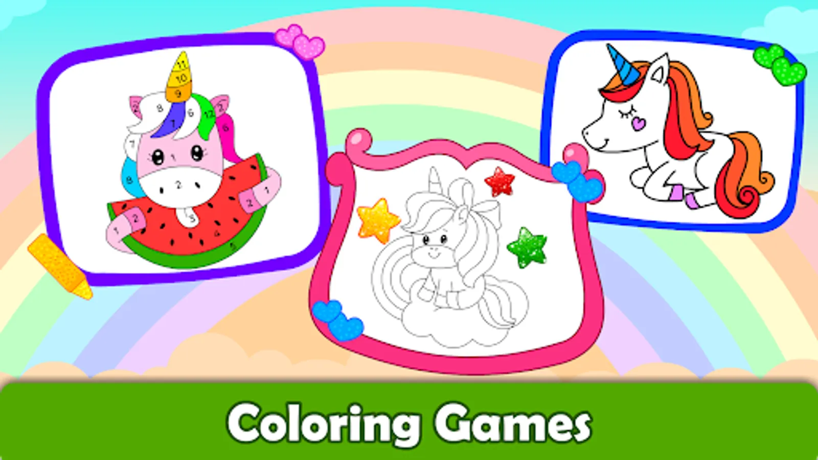 Unicorn games for kids offer a variety of unicorn coloring pages, color by number games, and glitter coloring with lots of colors, patterns, and glitters to unleash their creativity and imagination.