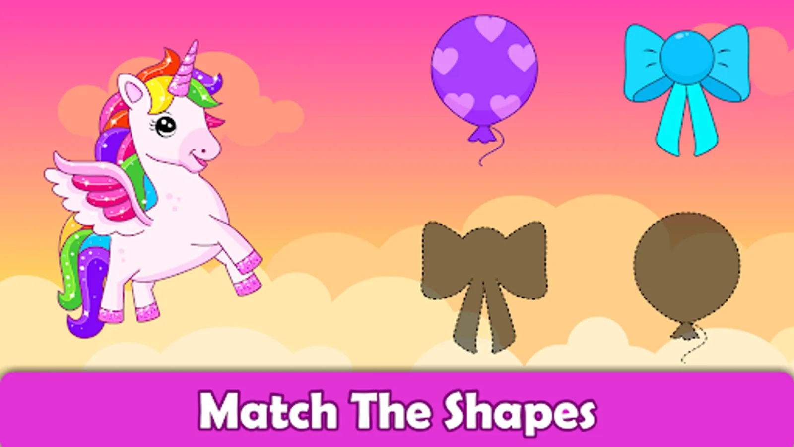 There are many other games like shadow matching games, odd one out, trace the path, unicorn adventure, memory games, unicorn jump, connect the dots, half puzzles to make your toddler's learning journey fun!