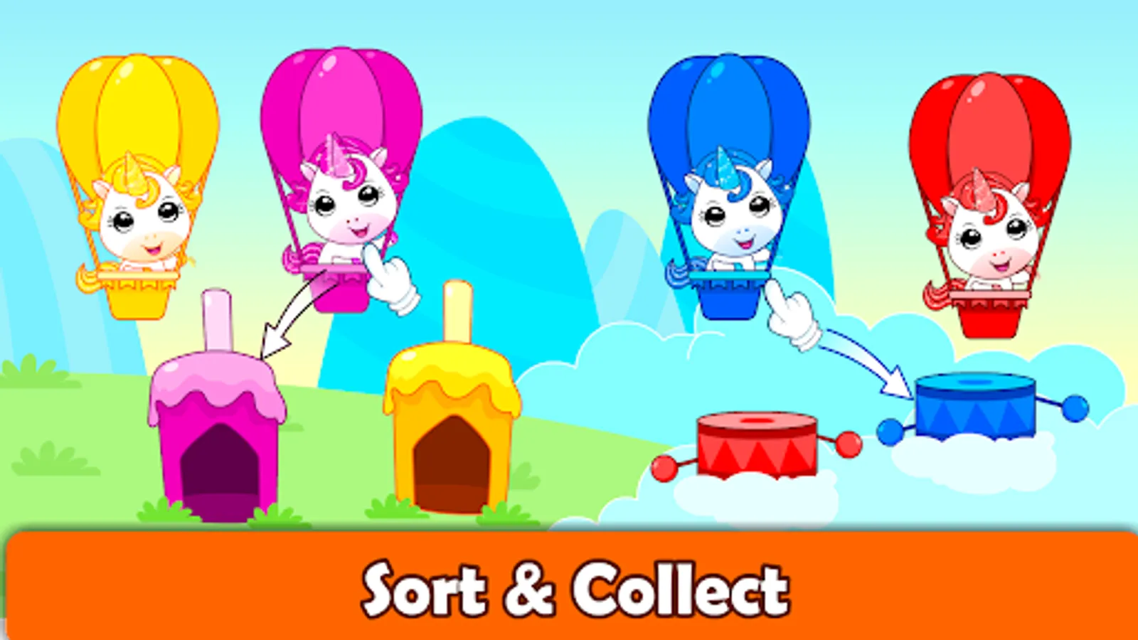 In toddler games for 2+-year-olds, kids will enjoy sorting games like color sorting, size sorting & sort by shapes activities where they’ll have to sort & collect different objects based on their size and color and learn about colors, shapes and sizes easily while playing learning games for kids.