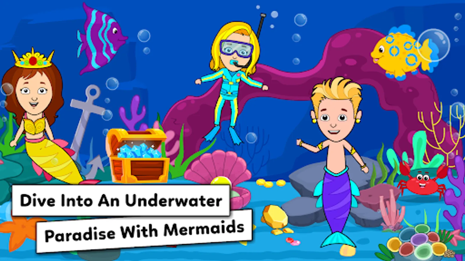 Say hello to mermaids and other cute sea creatures. Visit the local supermarket and buy delicious snacks, food, and other items. Stop by the salon to get a pedicure at the ocean spa.