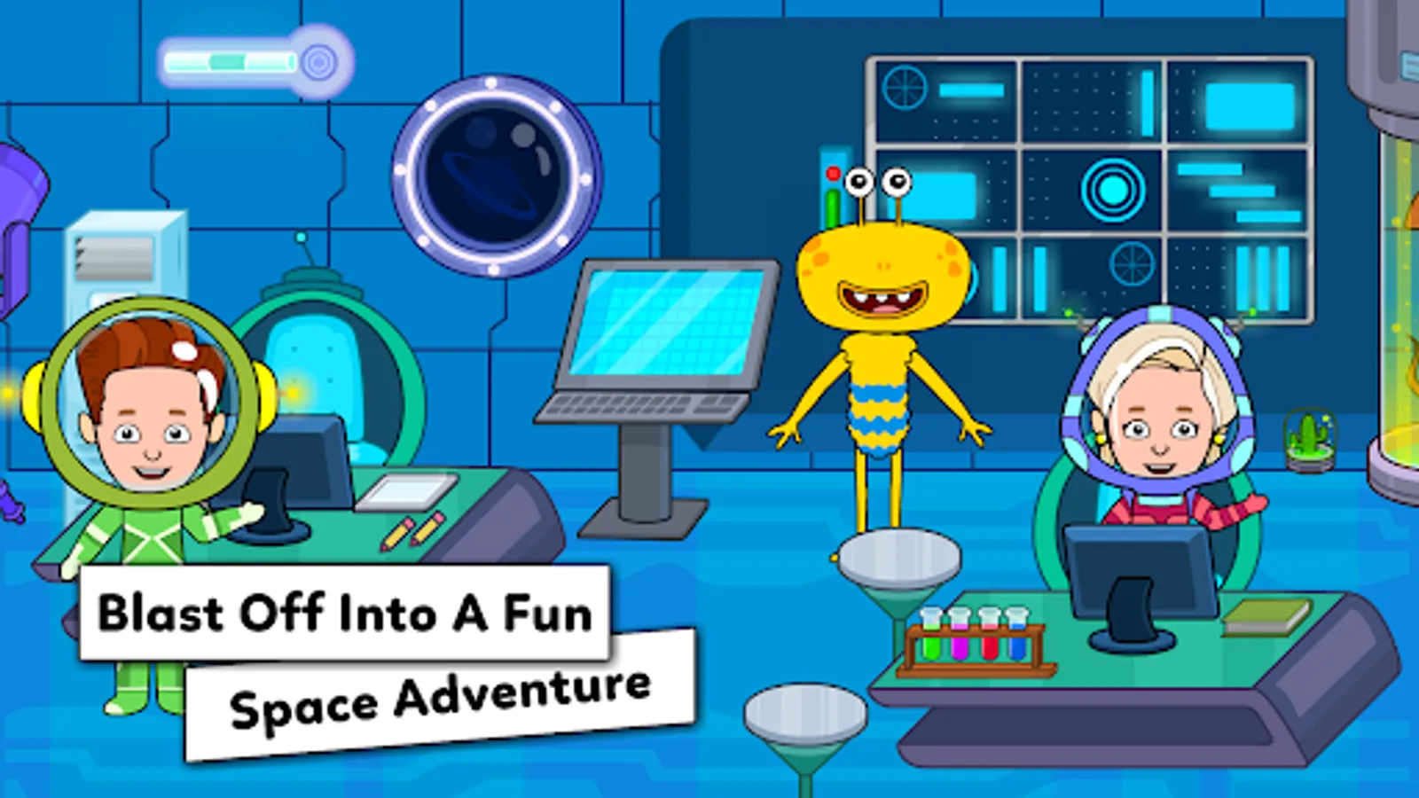 Meet astronauts and learn how they live in outer space. Make new alien friends and check out the cool robots. Grab snacks from the cafeteria and enjoy looking at stars and planets out of the window.