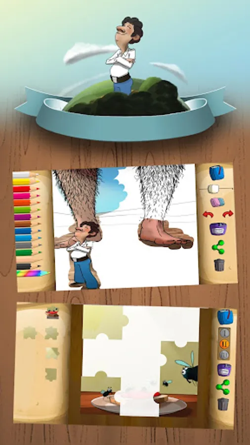 • Game 2 – Jigsaw puzzles of different scenes from the story with three difficulty levels of. Play with interesting jigsaw puzzles and discover the pictures.