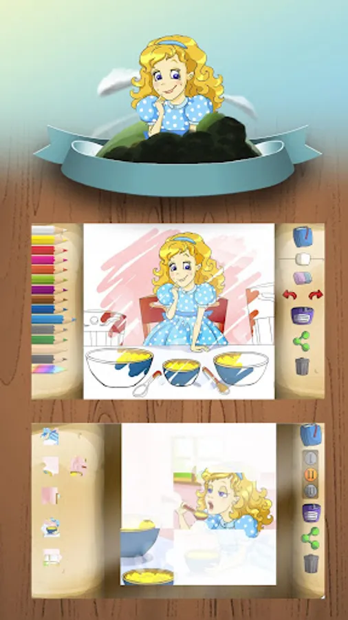 • Game 1 - Coloring book. You can color the different scenes of the story while reading. You can save the page and share it.