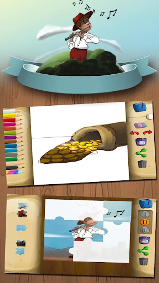 • Game 2 – Jigsaw puzzles of different scenes from the story with three difficulty levels of. Play with interesting jigsaw puzzles and discover the pictures.