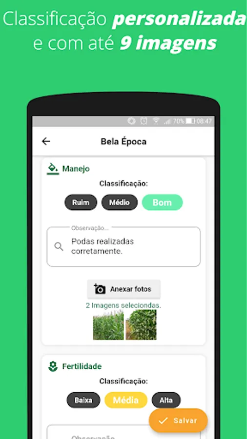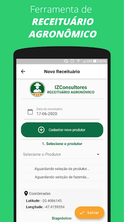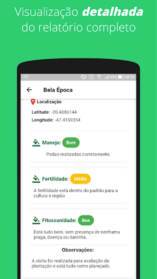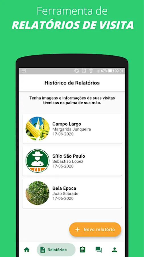 Register producers, farms and plots and, with this complete data, issue a visit report or agronomic prescription;