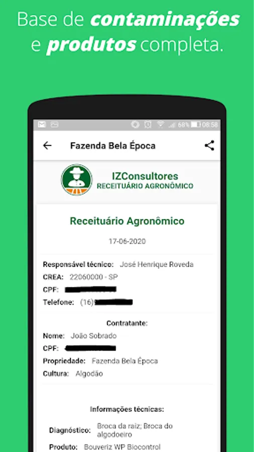 Use a complete base of phytopathologies and pesticides, with instant receipt of a copy in your email;
