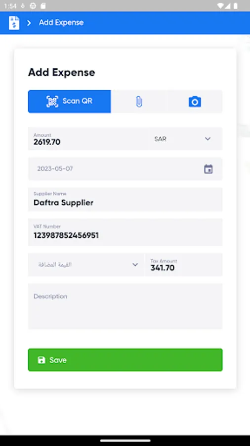 Quick Expenses Scanner App from Daftra, help you register your expenses instantly by scanning the QR Code on the E-invoices and implemented with VAT. you can also attach files and photos directly from your phone.