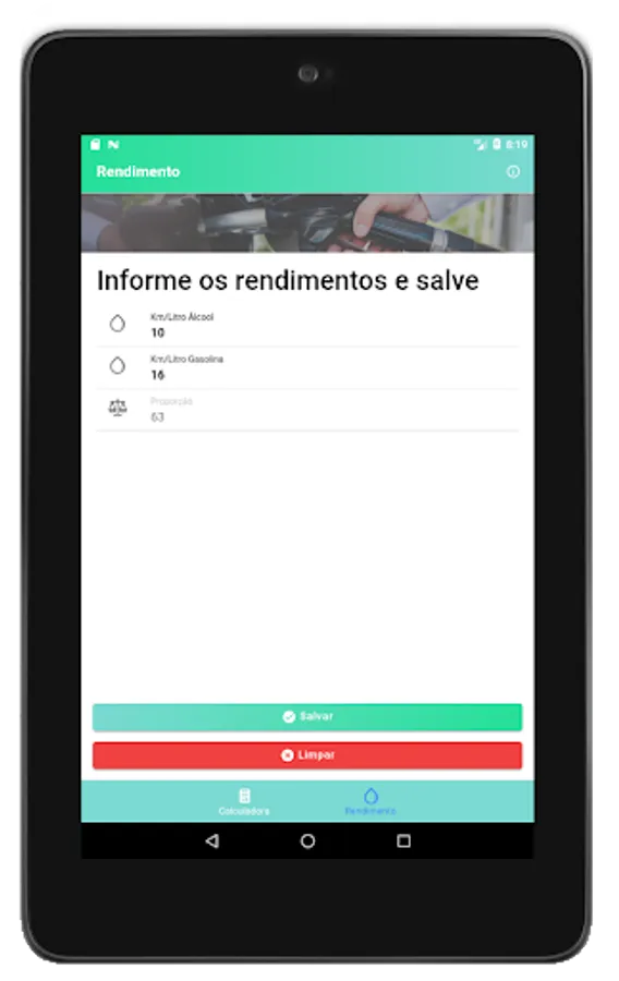 You can also inform the averages of gasoline and ethanol for your car, so you will have a more accurate proportion when calculating which fuel is more worth it.