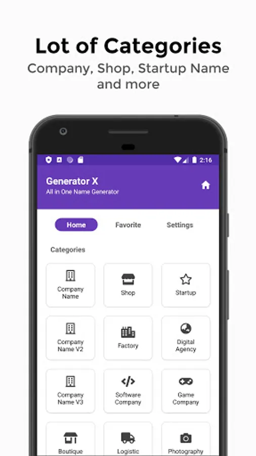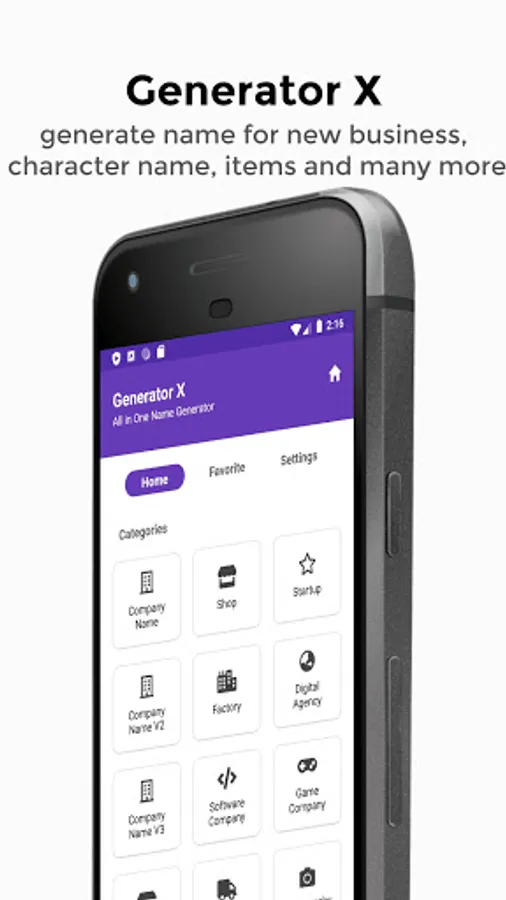 Generator X is an app to help you make name for new business, character name, role playing game item name and many more.